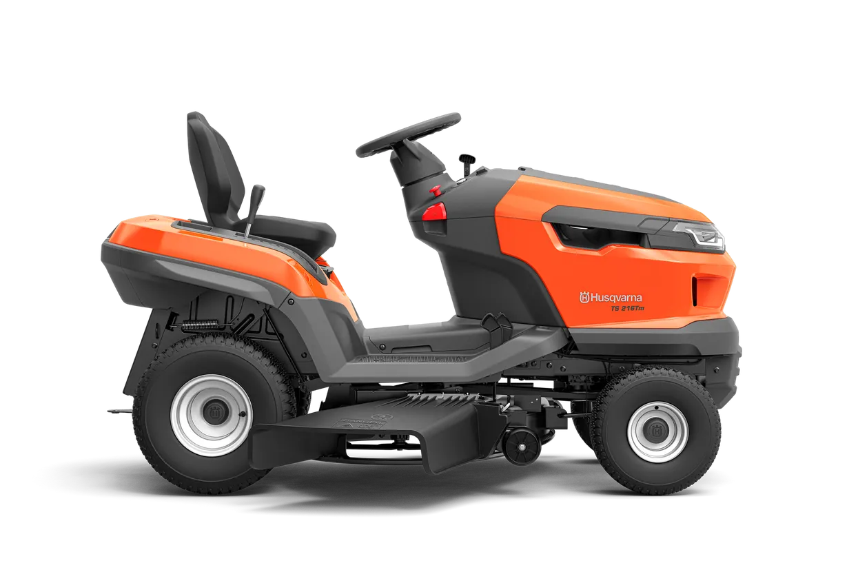 Husqvarna TS 216Tm garden tractor combines powerful performance with a user-friendly design for efficiently maintaining large lawns. Ergonomically placed controls and levers, along with a quickly adjustable seat, ensure high comfort throughout every task. Practical storage compartments provide a handy space for small equipment and hand tools, keeping them easily accessible. The 108 cm cutting deck offers outstanding cutting performance, and with multiple cutting heights, mowing can be tailored for various needs and grass conditions. Thanks to the spring-assisted adjustment mechanism, operator strain is reduced, making the process smooth and effortless.